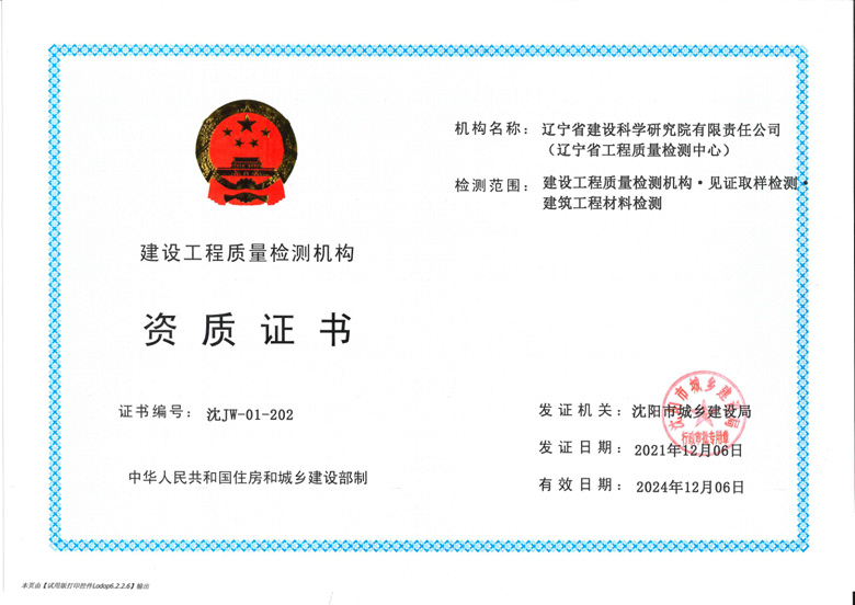歡迎進入遼寧省建設科學研究院有限責任公司(遼寧省工程質量檢測中心)官網