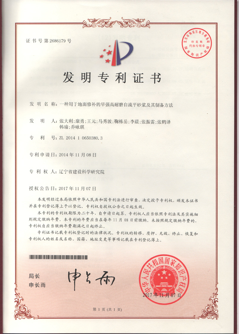 證書---一種納米材料改性粉體聚羧酸高性能減水劑的制備方法